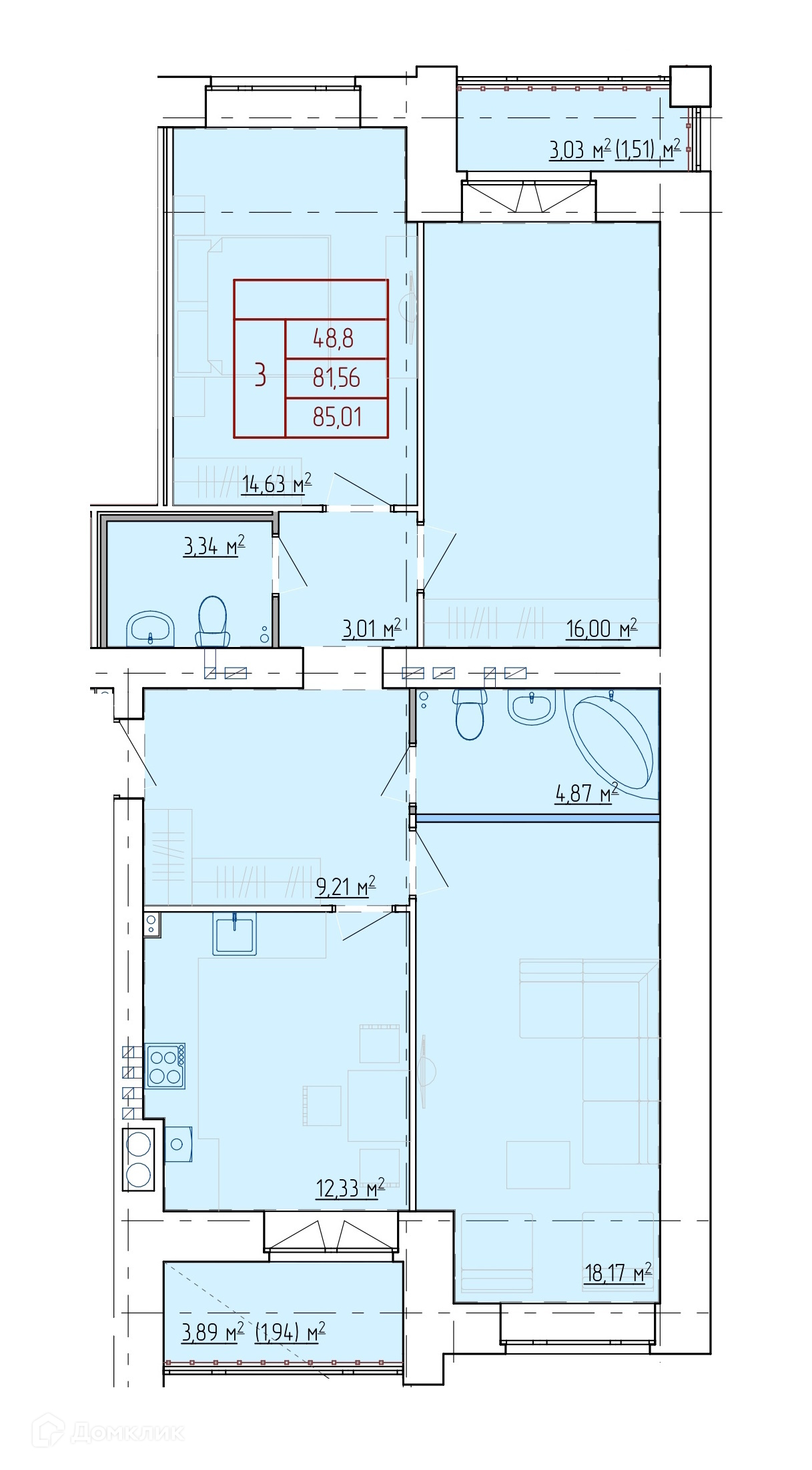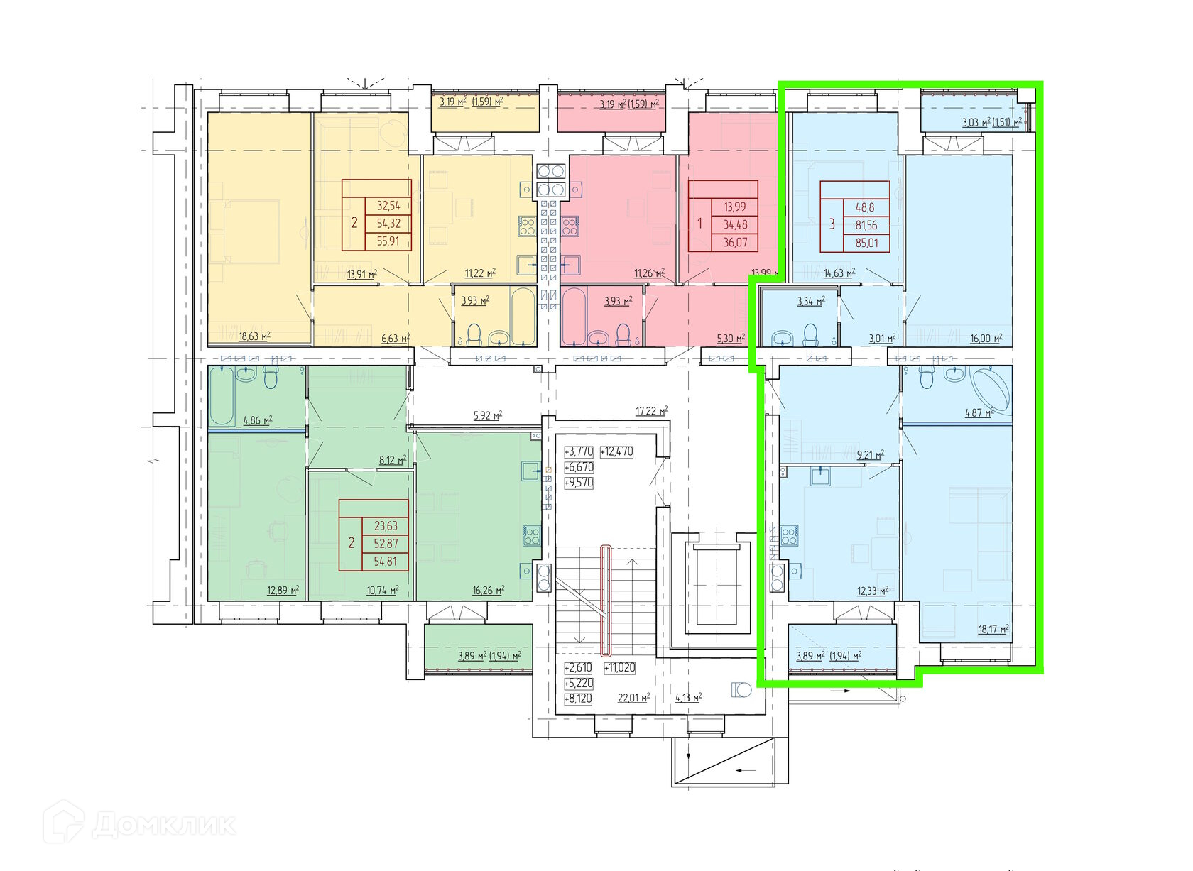 Площади квартир