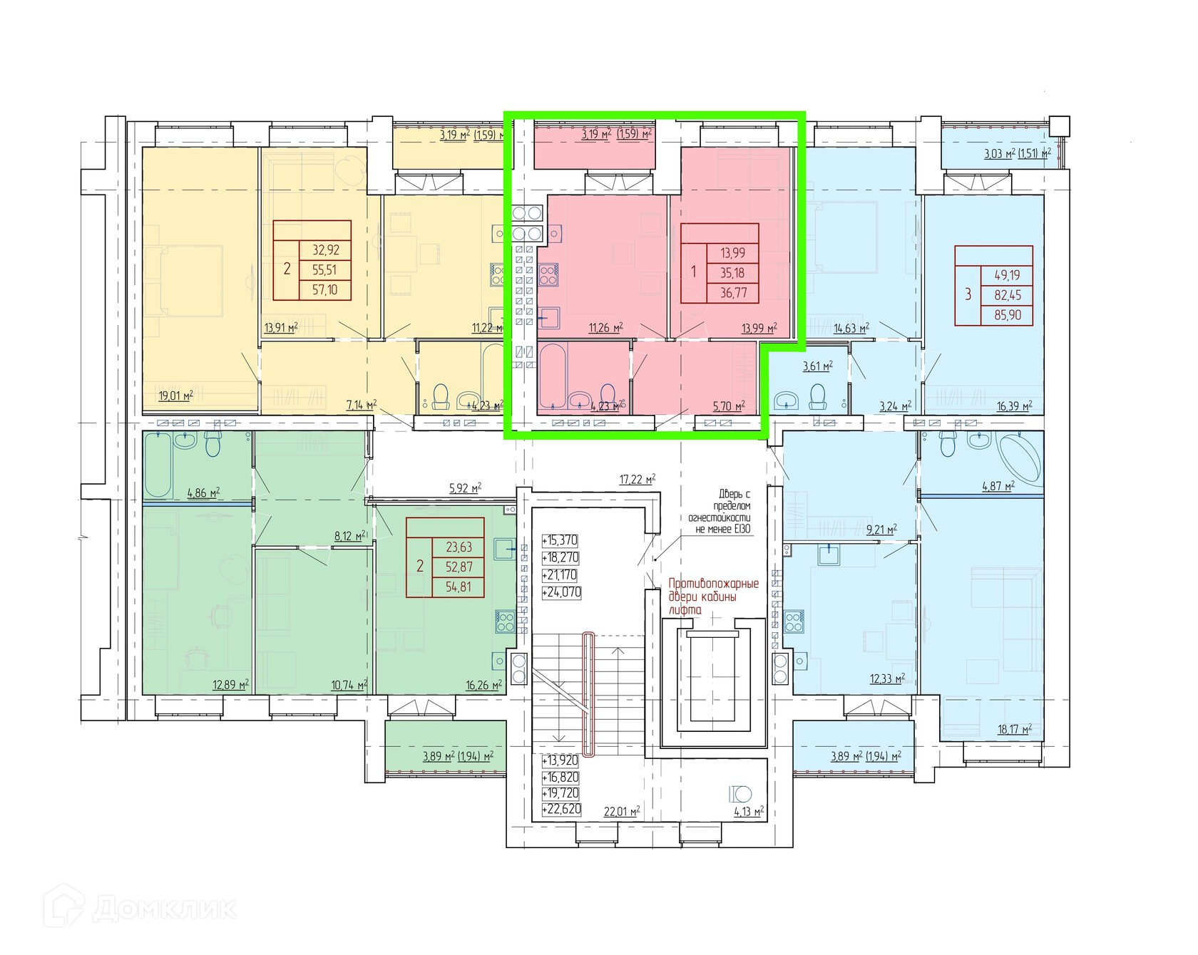 Площади квартир