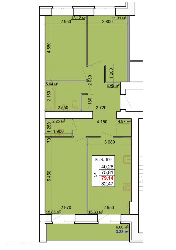 3 комн. квартира в Костроме в ипотеку от 166 364 руб/месяц