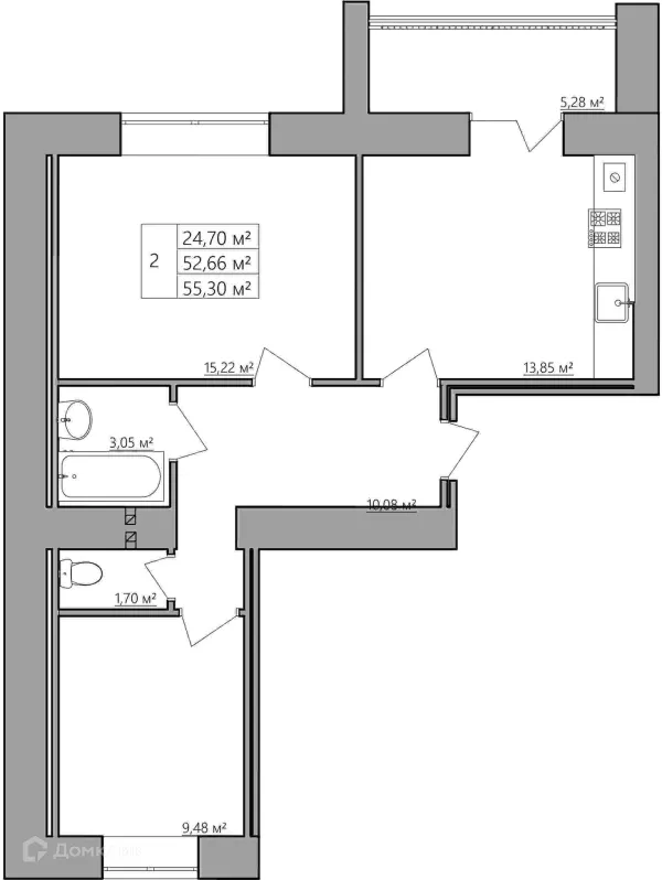 2 комн. квартира в Костроме в ипотеку от 26 252 руб/месяц