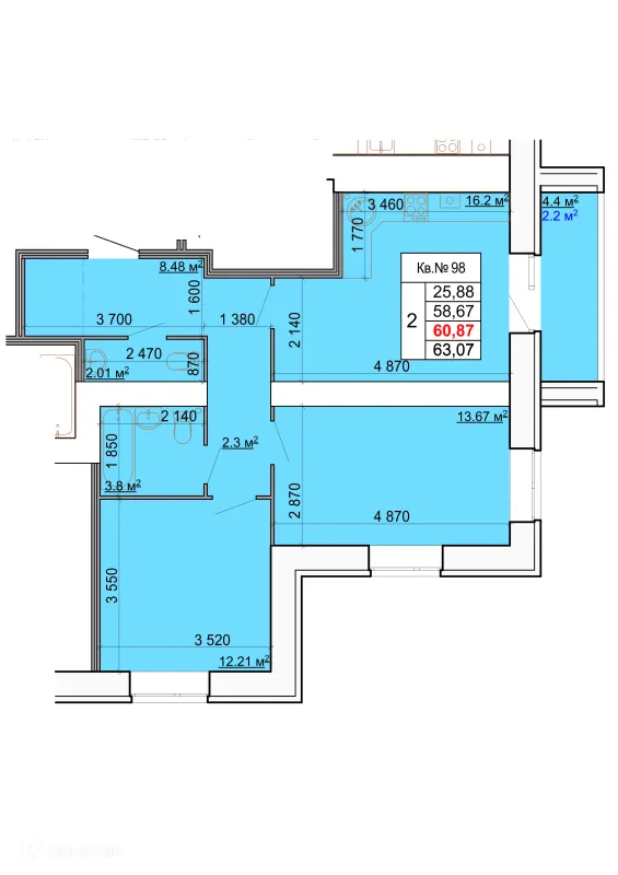 2 комн. квартира в Костроме в ипотеку от 52 907 руб/месяц