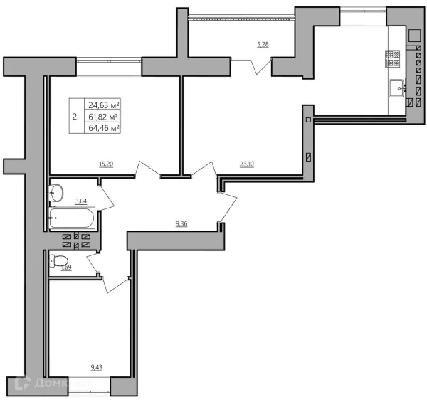 2 комн. квартира в Костроме в ипотеку от 49 204 руб/месяц
