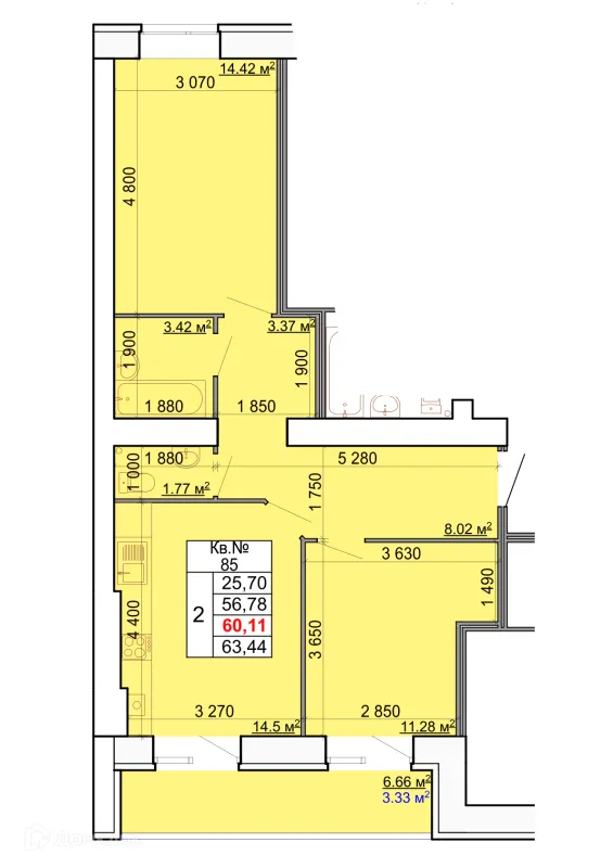 2 комн. квартира в Костроме в ипотеку от 52 907 руб/месяц
