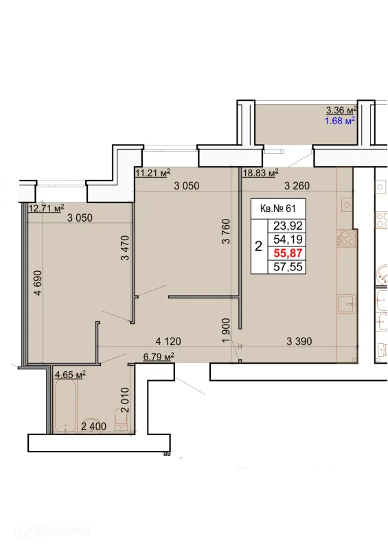 2 комн. квартира в Костроме в ипотеку от 161 224 руб/месяц