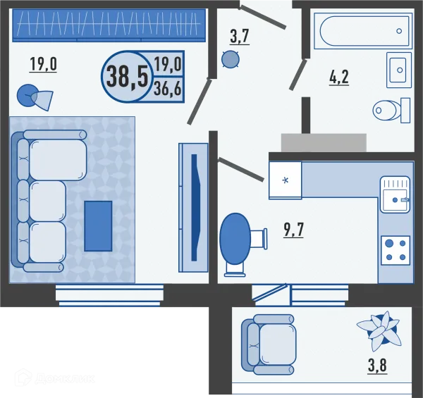 2 комн. квартира в Орле в ипотеку от 38 115 руб/месяц