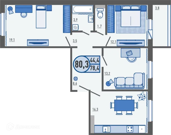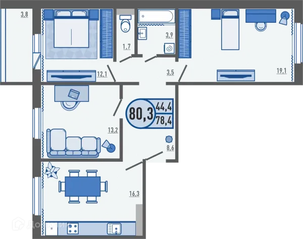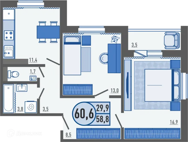 3 комн. квартира в Орле в ипотеку от 47 298 руб/месяц